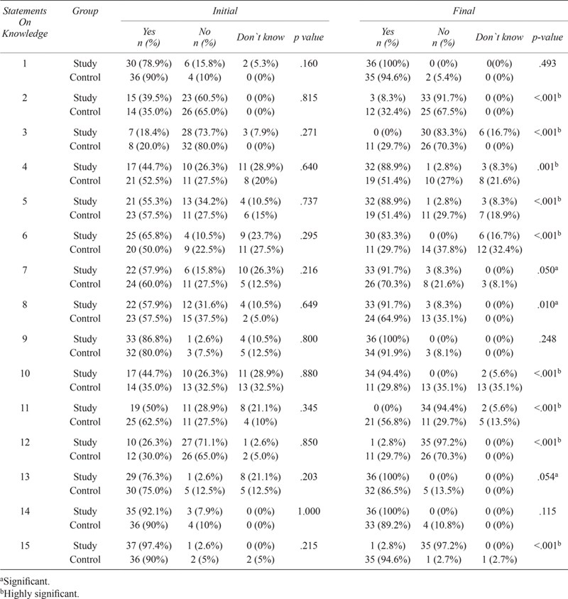 TABLE 3. Comparative evaluation of oral-hygiene knowledge of caretakers in study and control group