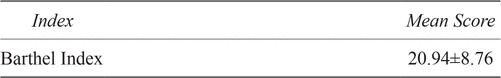 The level of dependency assessed using the Barthel Index showed a mean score of 20.94 ± 8.76 (Table 3).