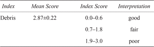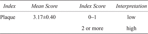 The index for the entire mouth is determined by dividing the total score by the number of surfaces examined. Interpretation: a score of 0–1 is considered low and a score of 2 or more is considered high.