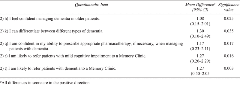 This study highlights the need for dementia training in post-graduate family medicine programs. Data obtained from the questionnaire and the feedback interviews appear to be convergent. The questionnaire results are consistent with the qualitative findings which can suggest some evidence of an effect of the program. For example, the difference in total score on the knowledge component of the questionnaire was significantly improved. Comments by participants in the follow-up interviews indicate that the participants’ also strongly felt that knowledge was improved.