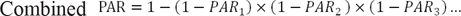 The PAR is defined as the number of cases of a disease in a population that can be attributed to a specific exposure. For the purpose of this paper, the PAR was the projected portion of cases of AD attributed to one or all six modifiable risk factors of interest. To calculate the PAR for each risk factor, we used the Levin formula,(16) as done previously:(14)where Prf refers to the prevalence of the risk factor and RR refers to the adjusted relative risk for AD associated with that risk factor. A combined PAR was calculated to determine the maximum combined effect of all risk factors: