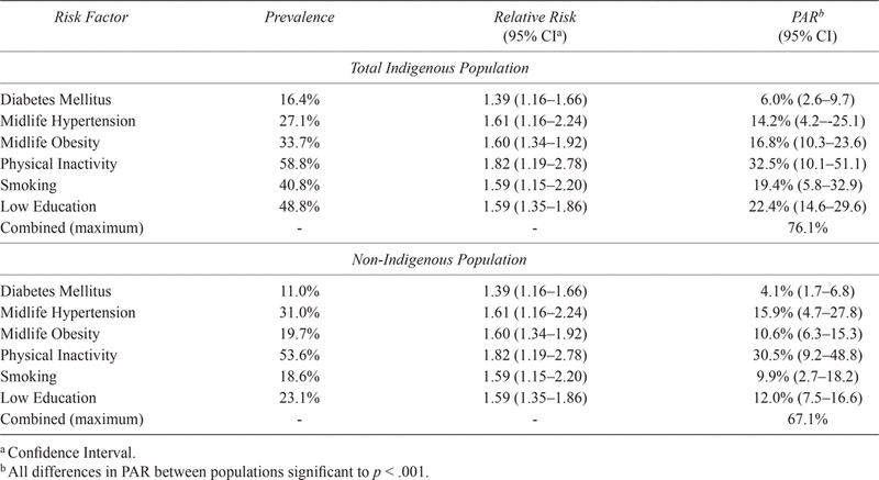 Thus, the population attributable risk (PAR) associated with most AD risk factors is higher among Indigenous groups than among non-Indigenous groups, suggesting that a greater portion of AD cases are preventable.