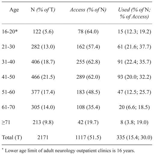 Access and use of Internet by patient age, general neurology outpatient clinics, 2001–2010