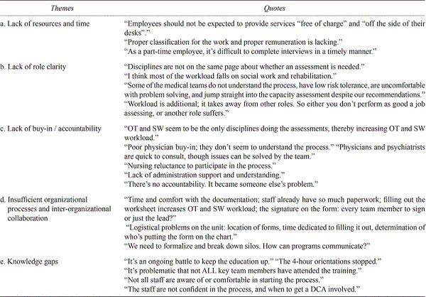 Describe any barriers or challenges you have encountered to implementing the new Decision Making Capacity Assessment model.