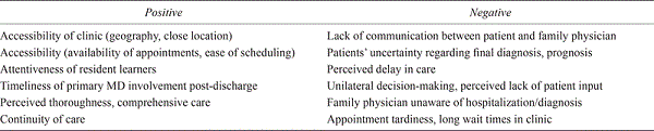 All narratives made some comment regarding their primary care experience following their release from hospital. Both positive and negative themes were found in the eight narratives (Table 3). Six of the eight subjects mentioned having an overall positive experience with their family physician.