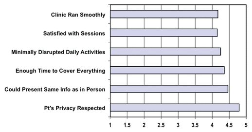 Telemedicine is the use of telecommunication technology for medical diagnosis and patient care. From its beginnings telemedicine has been used in a variety of health-care fields. While technological aspects of the interventions appear reliable and well-accepted by patients, the clinical benefits are less well-established.(2) In addition, issues relating to satisfaction with this care modality require further exploration from both client and provider perspectives.(4)