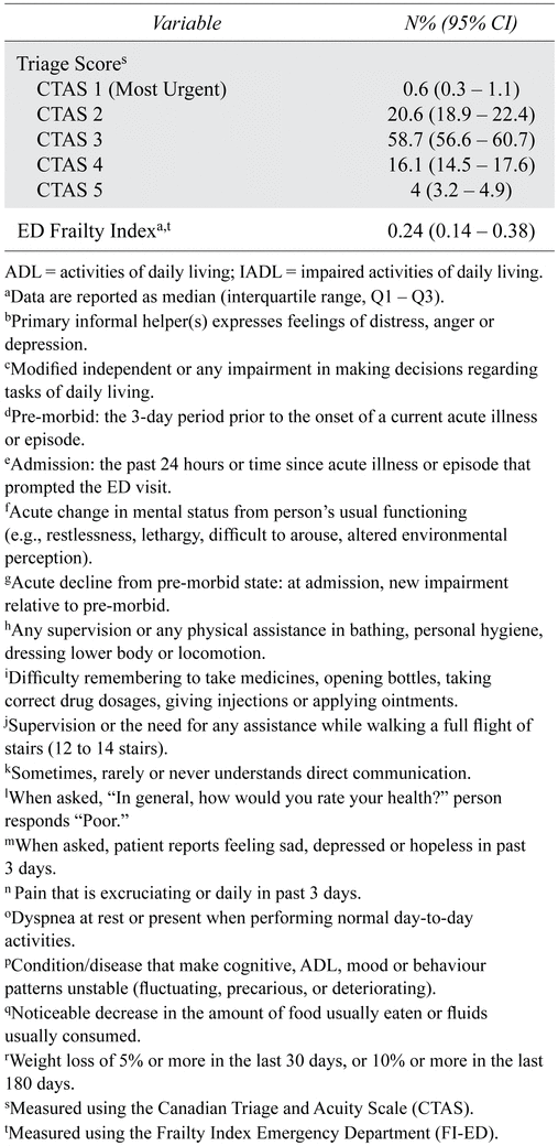 24 Gray LC, Peel NM, Costa AP, et al. Profiles of older patients in the emergency department: Findings from the interRAI Multinational Emergency Department Study. Ann Emerg Med. 2013;62(5):467–74.