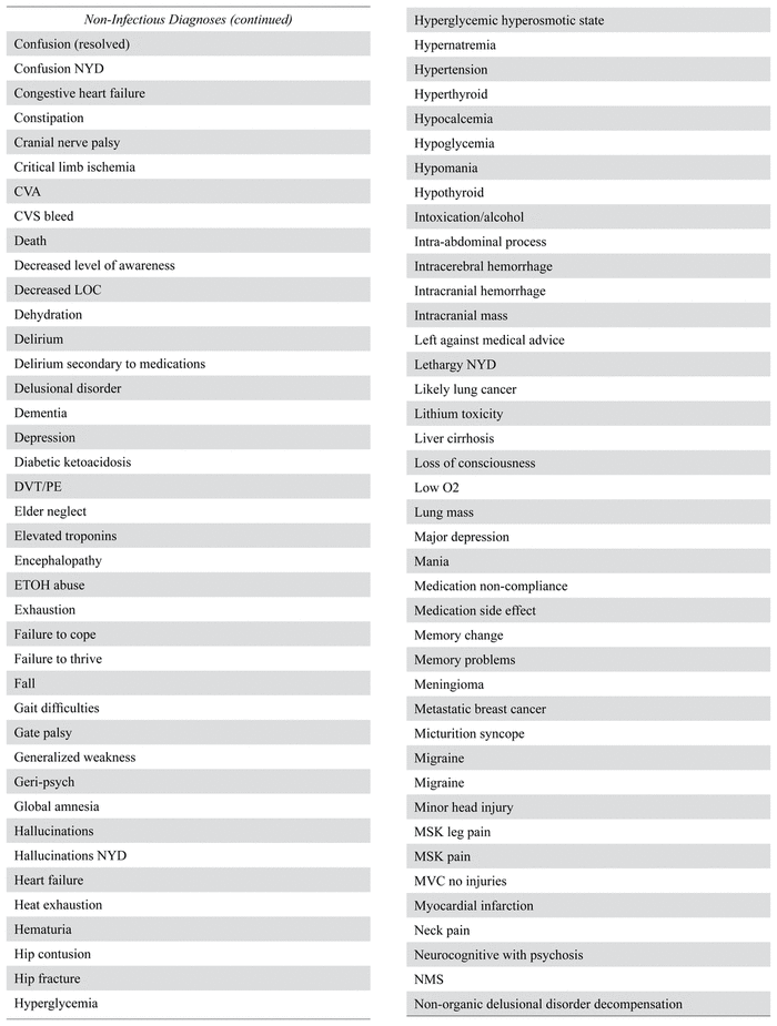9 Caterino JM, Kline DM, Leininger R, et al. Nonspecific symptoms lack diagnostic accuracy for infection in older patients in the emergency department. J Am Geriatr Soc. 2019;67(3):484–92.