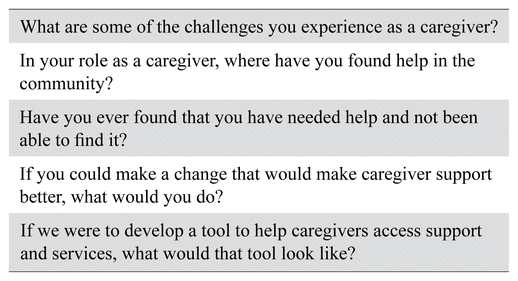 This project was considered to be a quality improvement (QI) initiative. We conferred with the Research Ethics Board (REB) at the University of Saskatchewan and received an exemption from REB review. Ethical conduct recommendations for QI initiatives(23) were followed. Participants were made aware during the introduction to the focus group that the purpose of the gathering was not to serve as a support group, but rather to set priorities for future support to caregivers. We also informed the group members that they were free to leave the room at any point if they felt uncomfortable.