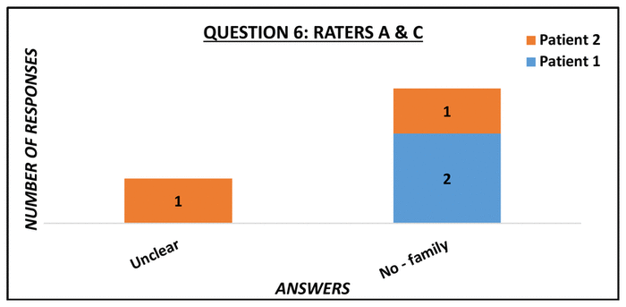 Figure 11 Participant answers to question 6 between raters A & CThe stacked bar chart shows each participant response to question 6, obtained during the decision-making capacity assessments done with the communication aid by raters A and C. | ||