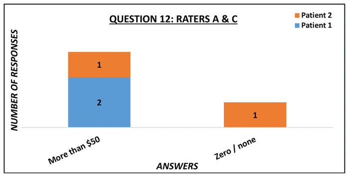 Figure 23 Participant answers to question 12 between raters A & CThe stacked bar chart shows each participant response to question 12, obtained during the decision-making capacity assessments done with the communication aid by raters A and C. | ||