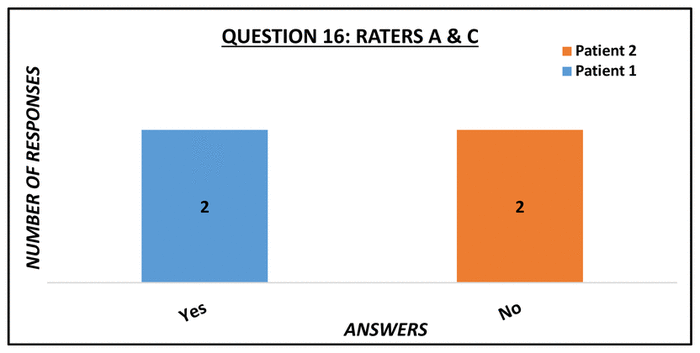 Figure 31 Participant answers to question 16 between raters A & CThe stacked bar chart shows each participant response to question 16, obtained during the decision-making capacity assessments done with the communication aid by raters A and C. | ||