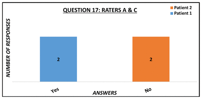 Figure 33 Participant answers to question 17 between raters A & CThe stacked bar chart shows each participant response to question 17, obtained during the decision-making capacity assessments done with the communication aid by raters A and C. | ||