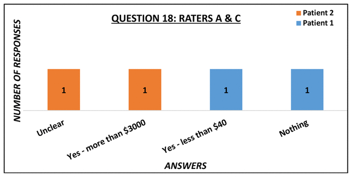 Figure 35 Participant answers to question 18 between raters A & CThe stacked bar chart shows each participant response to question 18, obtained during the decision-making capacity assessments done with the communication aid by raters A and C. | ||