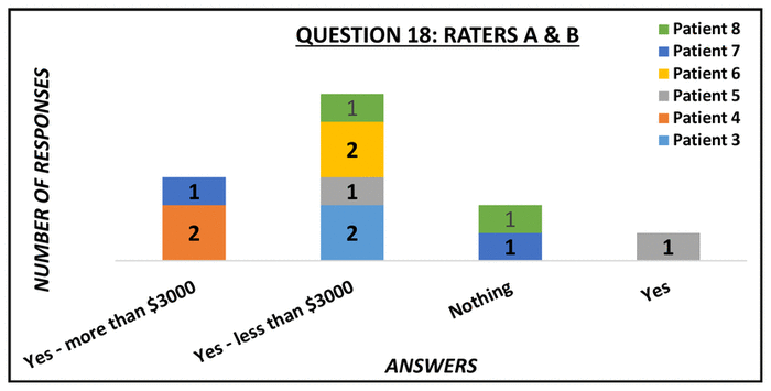 Figure 36 Participant answers to question 18 between raters A & BThe stacked bar chart shows each participant response to question 18, obtained during the decision-making capacity assessments done with the communication aid by raters A and B. | ||