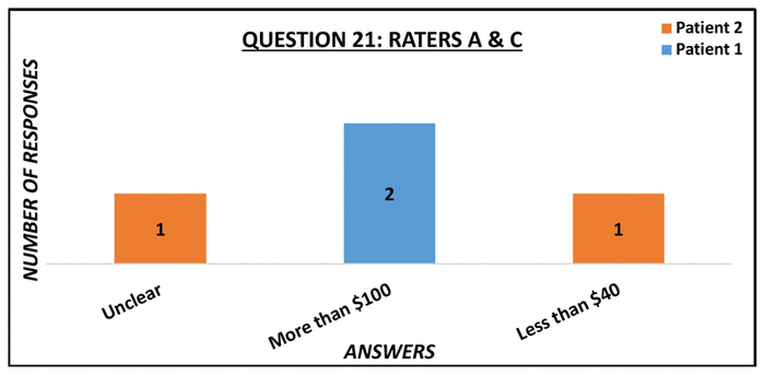 Figure 41 Participant answers to question 21 between raters A & CThe stacked bar chart shows each participant response to question 21, obtained during the decision-making capacity assessments done with the communication aid by raters A and C. | ||