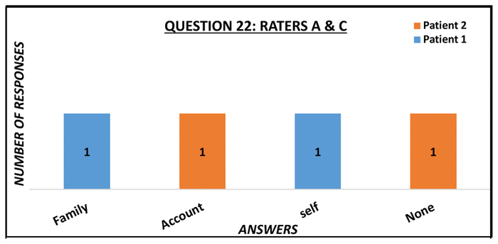 Figure 43 Participant answers to question 22 between raters A & CThe stacked bar chart shows each participant response to question 22, obtained during the decision-making capacity assessments done with the communication aid by raters A and C. | ||