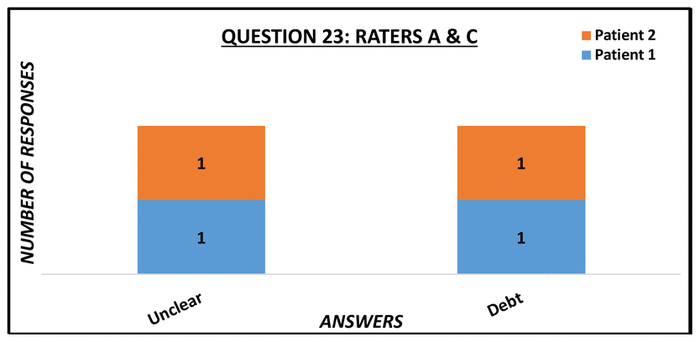 Figure 45 Participant answers to question 23 between raters A & CThe stacked bar chart shows each participant response to question 23, obtained during the decision-making capacity assessments done with the communication aid by raters A and C. | ||