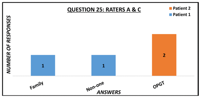 Figure 49 Participant answers to question 25 between raters A & CThe stacked bar chart shows each participant response to question 25, obtained during the decision-making capacity assessments done with the communication aid by raters A and C. | ||