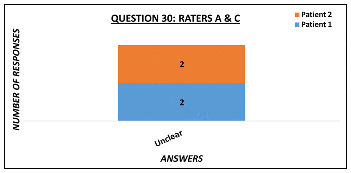 Figure 59 Participant answers to question 30 between raters A & CThe stacked bar chart shows each participant response to question 30, obtained during the decision-making capacity assessments done with the communication aid by raters A and C. | ||