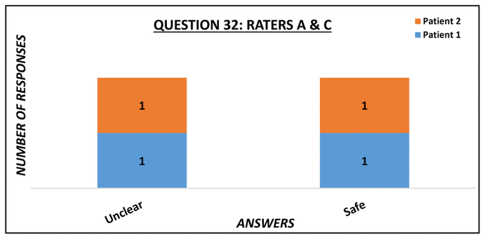 Figure 63 Participant answers to question 32 between raters A & CThe stacked bar chart shows each participant response to question 31, obtained during the decision-making capacity assessments done with the communication aid by raters A and C. | ||