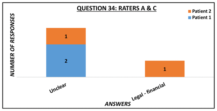 Figure 67 Participant answers to question 34 between raters A & CThe stacked bar chart shows each participant response to question 34, obtained during the decision-making capacity assessments done with the communication aid by raters A and C. | ||