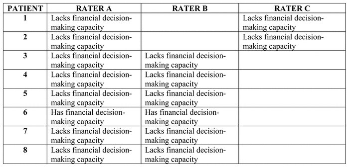 Table 1 Outcomes from the decision-making capacity assessments by patient