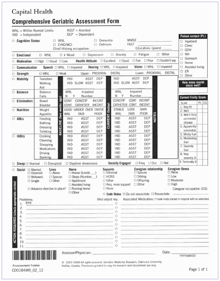 This is a secondary data analysis of the Geriatric Patient Information Database, a single-site cohort study of prospectively enrolled older adults presenting to the ED in a large Canadian tertiary care center in Halifax, Nova Scotia from July 2009 to September 2020. Patients 65 years or older were seen by a geriatrician, senior internist or member of their team (senior medical resident or geriatric fellow) and completed a Comprehensive Geriatric Assessment (CGA). This database, known as the Geriatric Patient Information Database (GPID) has been described in previous publications.(11,12)