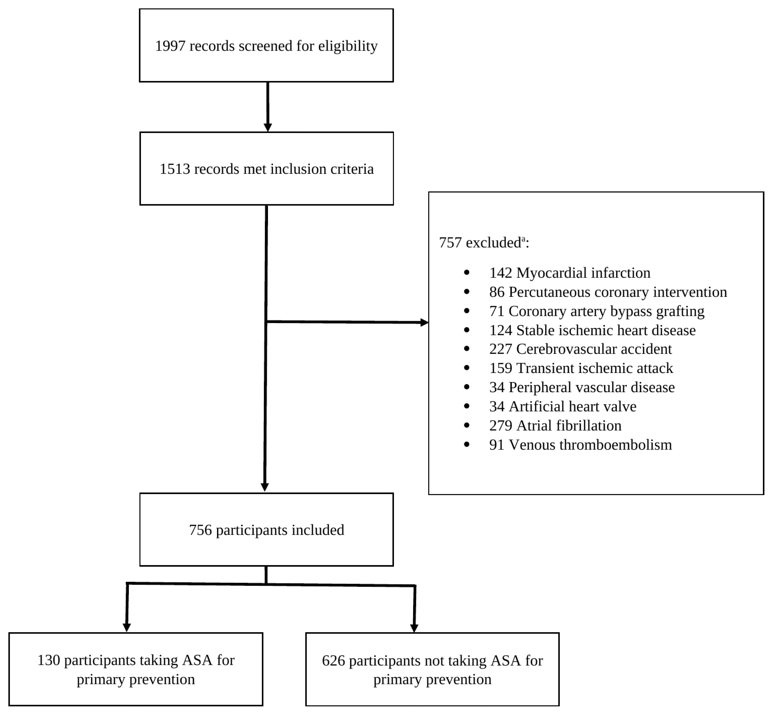 A retrospective cross-sectional study of ASA use for primary prevention in ambulatory older adults without known CVD in an urban Canadian city was conducted.