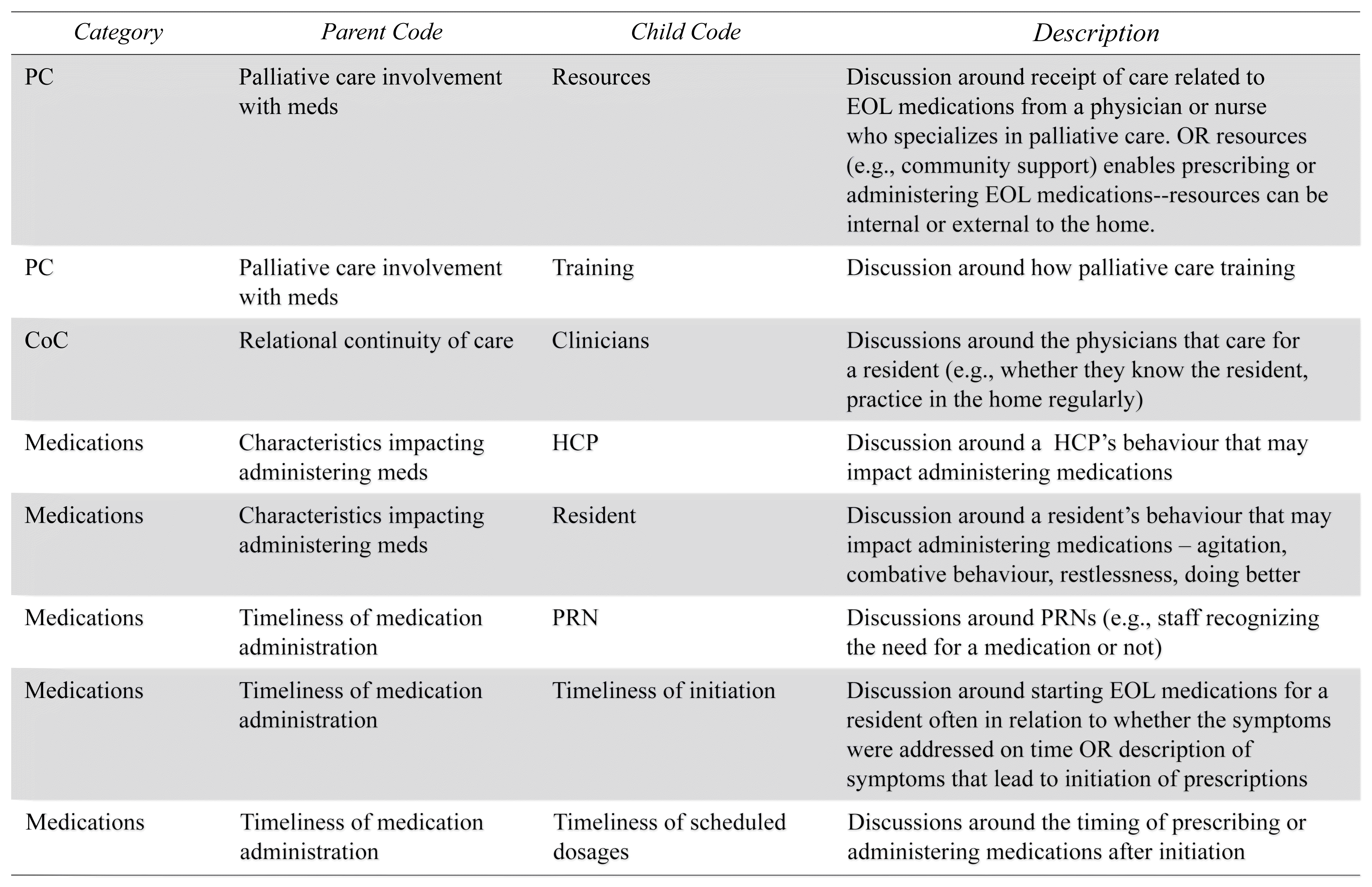This qualitative study is part of a larger multi-methods research project to evaluate end-of-life care in LTC. For the quantitative analyses, the team conducted retrospective cross-sectional studies. For each LTC home in Ontario, the team calculated the metric—the proportion of residents prescribed medication in the last two weeks of life. Homes were then grouped into quintiles based on the metric; in the top prescribing quintile, 83% of residents were, on average, prescribed an end-of-life symptom management medication, while in the lowest prescribing quintile, only 38% of residents were prescribed an end-of-life symptom management medication.(8) The analysis was conducted twice, evaluating a period before COVID (January 17, 2017 to March 17, 2020) and during COVID (March 18, 2020 to March 17, 2021). The quantitative analyses are being replicated in Alberta.