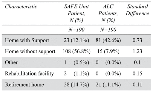TABLE 5 Discharge location of patients who received care in the SAFE Unit and Usual Care