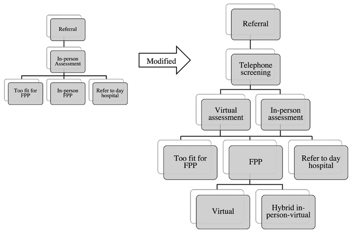 COVID-19 interfered with many critical outpatient services, including FPPs, while simultaneously increasing the need for these supportive programs by disproportionally impacting geriatric patient populations. Canadians aged 65 and older accounted for 80% of the COVID-19 related deaths during the first 15 months of the pandemic.(6) Many seniors hesitated to seek medical help, leading to delayed access to primary care and in-person services.(6–8) During this period of heightened senior needs, services had to adapt to changing public health restrictions.(3)
