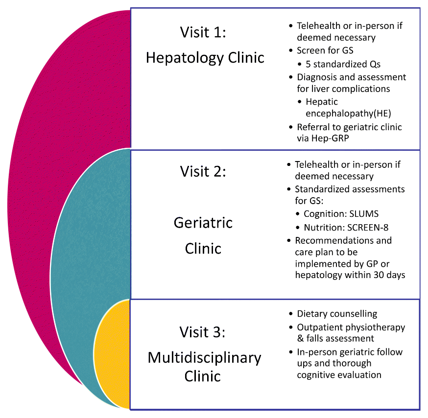 Our study sheds new light on the medical complexity faced by health-care providers in how best to manage this special population and provide some clarity by empathizing the unique needs of this vulnerable population. We have shown that this innovative Hep-GRP Care Pathway is feasible and acceptable to older adults with cirrhosis, and provides a multidisciplinary approach for addressing their complex medical and psychosocial needs, which could not be met by a single specialist or organ-specific care alone. However, further evaluation is required. Further research on virtual screening tools in seniors should be developed.