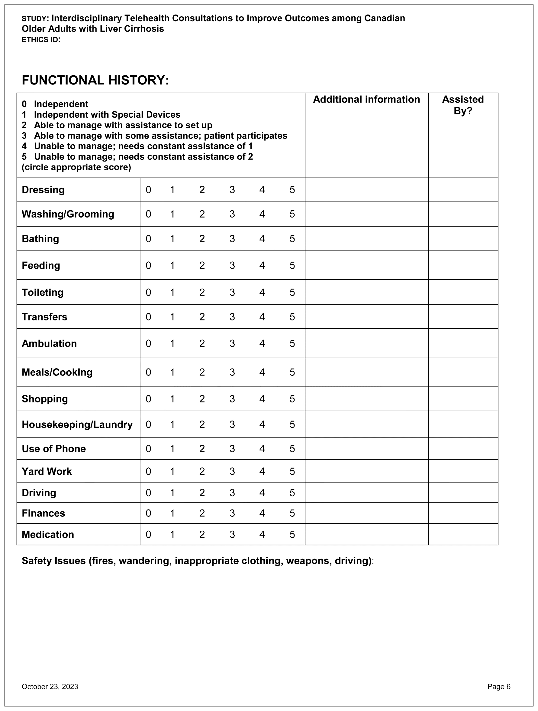 The Comprehensive Geriatric Assessment (CGA) is a “multidisciplinary diagnostic and treatment process that identifies medical, psychosocial, and functional limitations of a frail older person to develop a coordinated plan to maximize overall health with aging”.(14) Its benefits have been well-established for in-patients,(15,16) and for certain populations (e.g., dementia).(14) However, there has been surprisingly little research on CGAs for older adults living with cirrhosis, who are potentially one of the most vulnerable populations most likely to benefit.