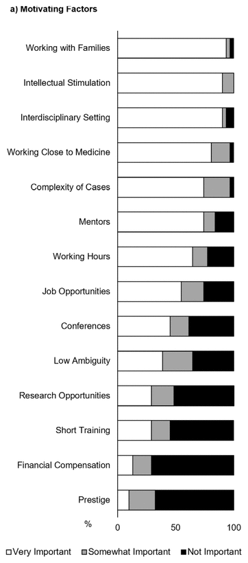 A similar assessment of motivating factors and program satisfaction for current residents is essential to improve recruitment. We conducted a survey among geriatric psychiatry residents across Canada and the United States to identify motivating factors for selecting geriatric psychiatry fellowships, and to assess fellowship training satisfaction. Given that geriatric psychiatry training programs differ between Canada and the U.S. (two-years in Canada versus one-year in the U.S.), a secondary aim was to see any variances between the two countries.