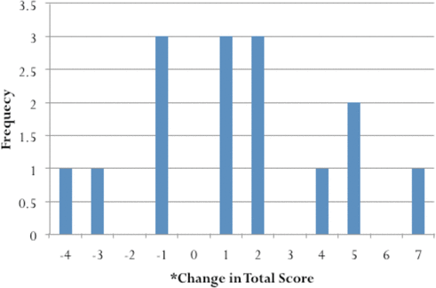 Figure 1. Frequency of participants and change in total scores (post–pre) *The change in score of 4 is actually 3.9. |