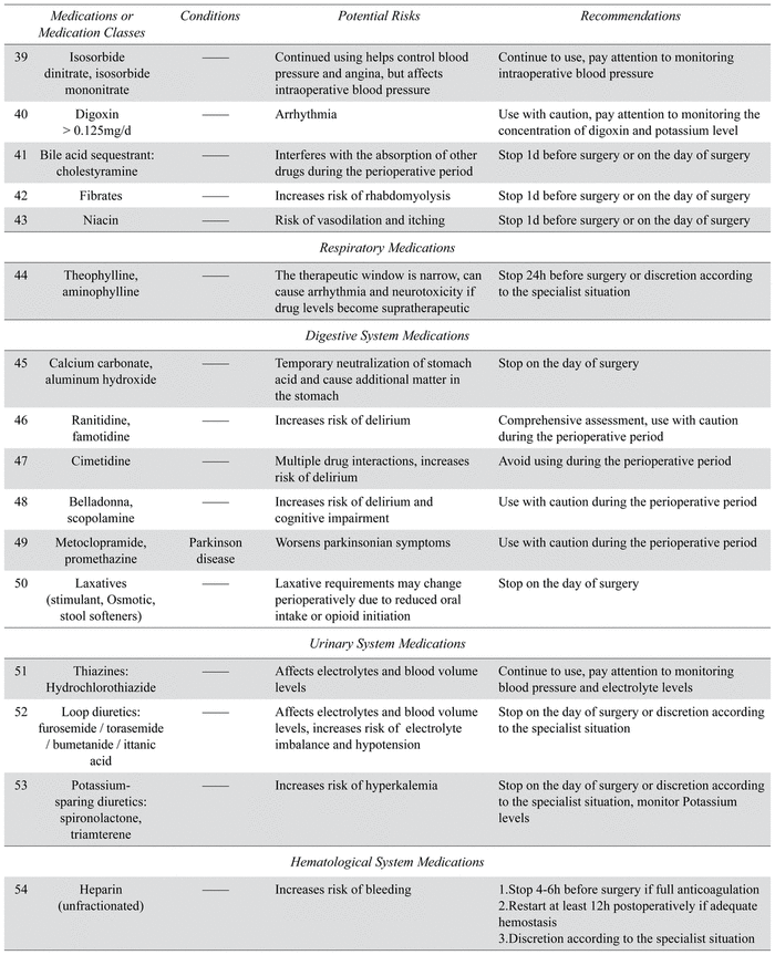 37. Wang S, Ren W, Tan X, Lv X, Liu Y, Gong Y. High-risk perioperative medications in the Chinese elderly population. Clin Interv Aging. 2021 Jun 24;16:1201–13.