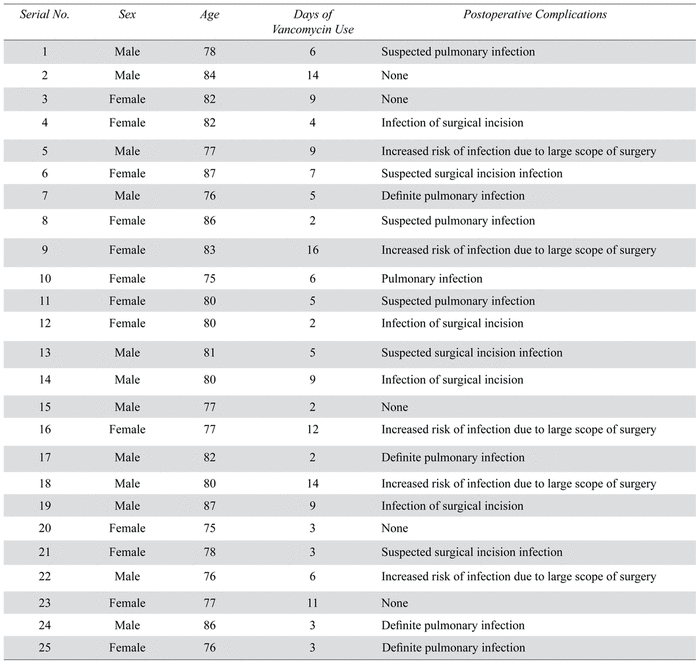 APPENDIX D Postoperative complications in patients receiving vancomycin