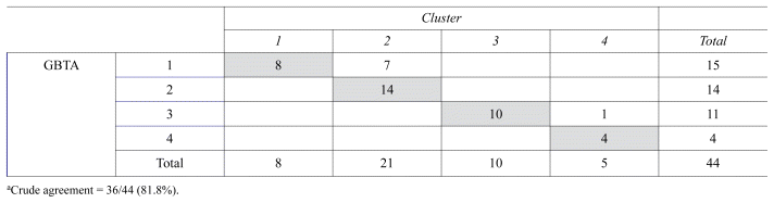 TABLE 2 Concordance of cluster groupings with trajectory groupingsa