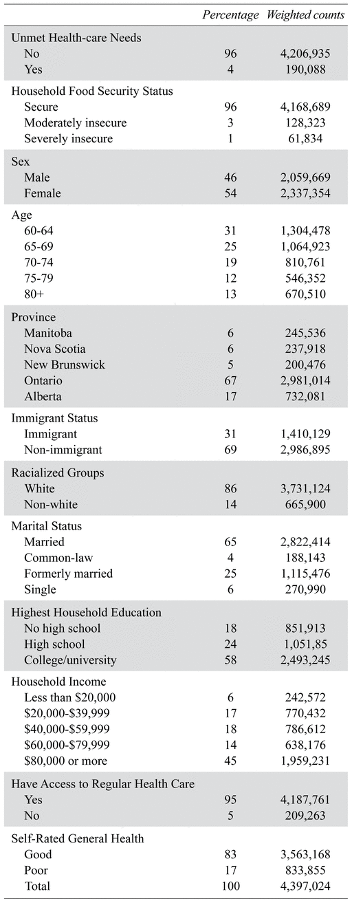 Key words: unmet health-care need, older age, seniors, food insecurity, Canada