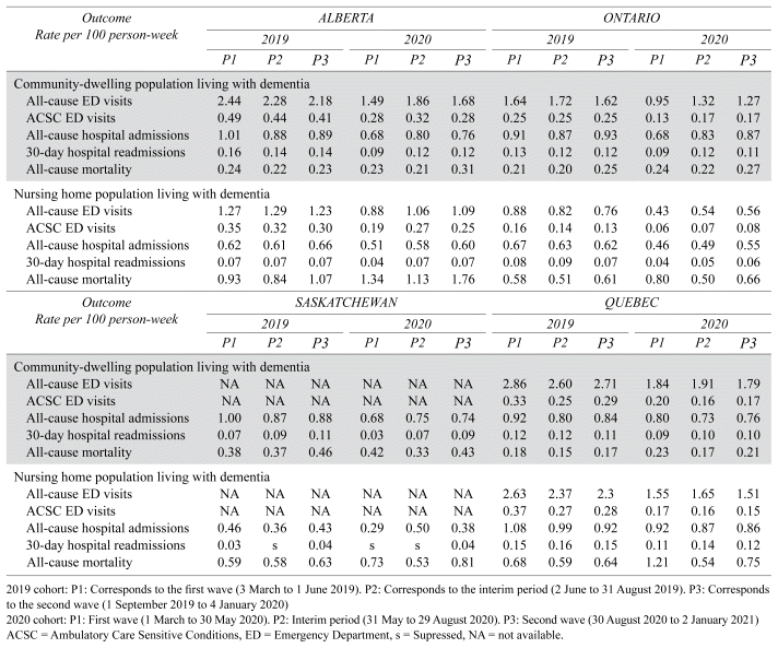 TABLE 2 Rates of outcomes during pre-pandemic and pandemic periods in four Canadian provinces