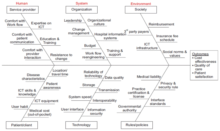 16. Chang H. Evaluation framework for telemedicine using the logical framework approach and a fishbone diagram. Healthc Inform Res. 2015 Oct 31;21(4):230–38.
