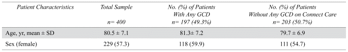 In the 400-patient chart review, the mean age of our patient population was 80.5 years (SD ± 7.1) with an age range of 65–98 years (Table 1). Our patient population was 57.3% female.