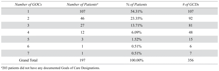 TABLE 2 Number of documented Goals of Care Designations among those with GCD orders