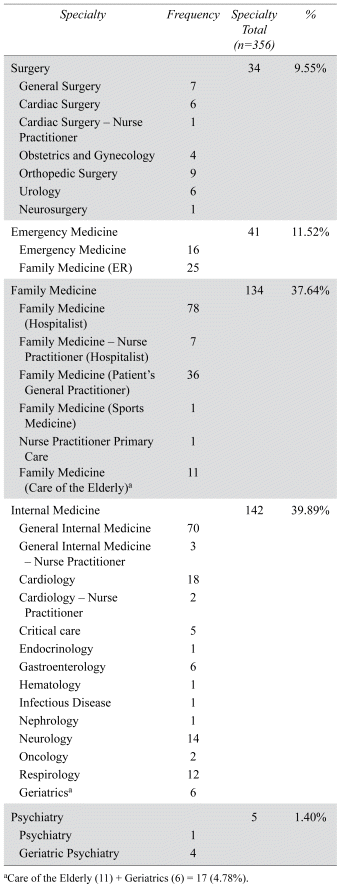 TABLE 4 Specialties or professions completing Goals of Care Designation order
