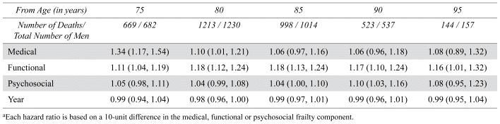 TABLE 3 Results of Cox proportional hazards for mortality at different ages; the Hazard Ratioa and 95% CI are presented